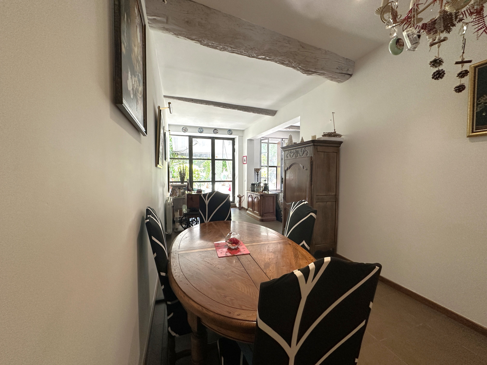 Elle est composée au rez-de-chaussée d'une cuisine aménagée et équipée (piano, hotte, lave vaisselle ) ouverte sur une salle à manger et au bout de cette pièce vous trouverez le séjour. Il y a aussi à ce niveau un bureau, un WC et d'une buanderie.